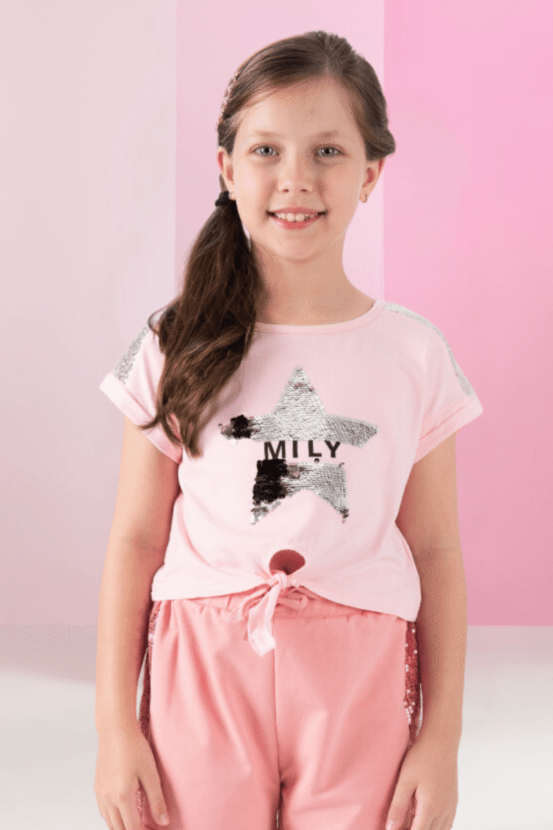 O cropped paetê estrela com amarração juvenil para menina é uma peça cheia de brilho e estilo, ideal para ocasiões mais especiais, como festas ou eventos informais. O paetê dá à peça um efeito cintilante, criando um visual divertido e cheio de personalidade. As estrelas, além de trazerem um toque lúdico e moderno, podem ser uma estampa muito popular, dando um charme ainda mais jovem à peça.