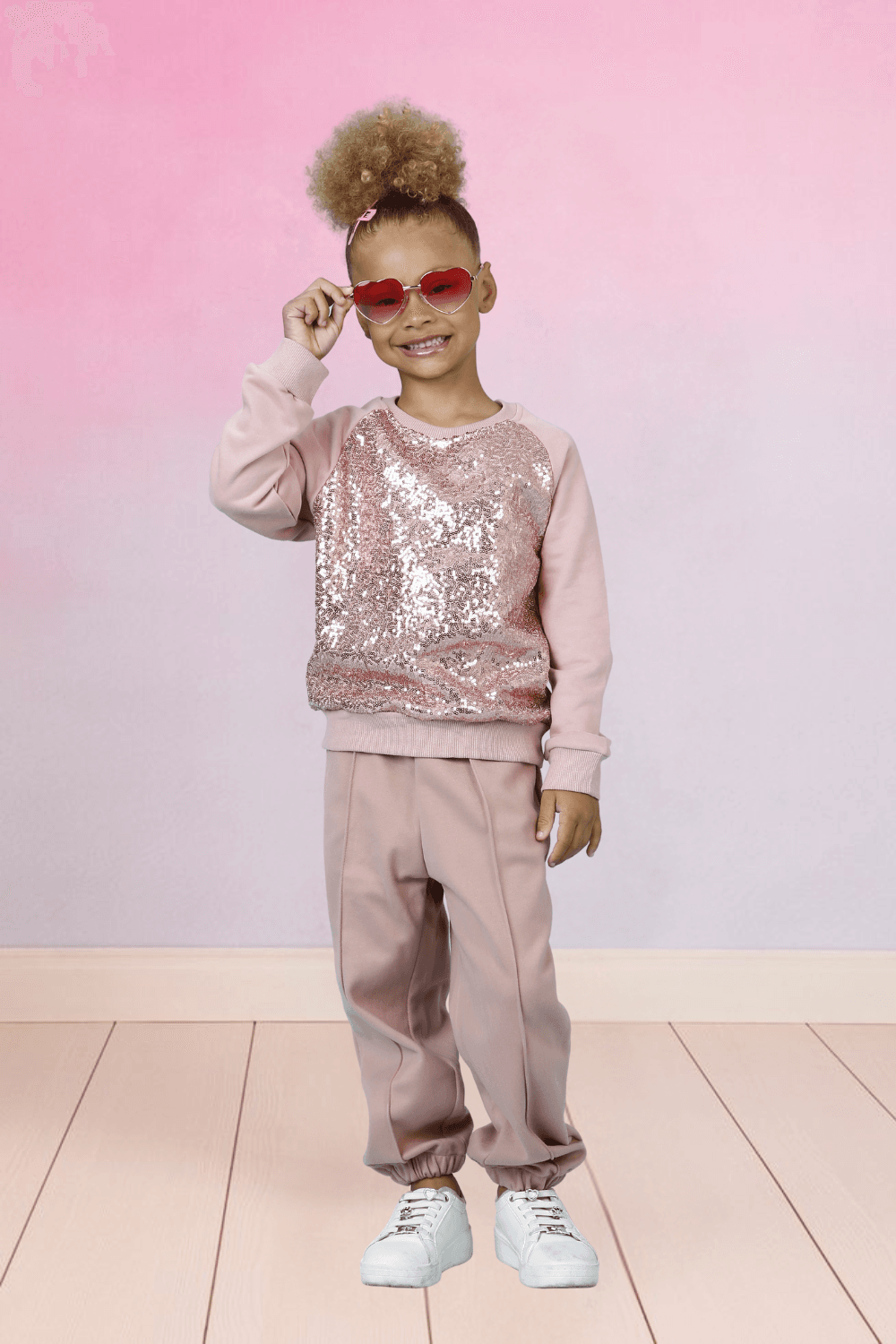 Blusa infantil de paetê disponível em duas cores encantadoras: rosê e bege. Confortável e estilosa, com mangas em moletinho leve e frente toda em paetês brilhosos que dão um toque moderno e delicado. Ideal para deixar qualquer look cheio de charme!