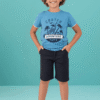 A camiseta infantil Surfing é perfeita para os pequenos que adoram estilo e conforto no dia a dia. Confeccionada em tecido leve e macio, ela possui gola arredondada com detalhe em contraste amarelo e estampa moderna com tema praiano, trazendo a palavra Surfing repetida em destaque junto a uma palmeira estilizada. Ideal para compor looks casuais e cheios de personalidade.