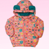 A jaqueta é feita com materiais leves e de boa qualidade, proporcionando liberdade de movimento. Seu visual vibrante, com cores alegres e tons suaves, reflete a energia e a personalidade das meninas. Ela possui detalhes como zíper frontal, bolsos laterais e, dependendo do modelo, capô ou outros acabamentos, garantindo funcionalidade e praticidade.